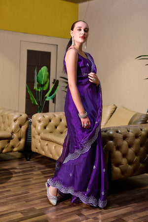 Purple Fancy Shimmer Chiffon Saree With Embroidery Work