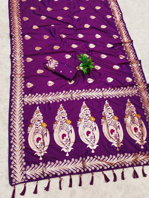 Purple Traditional Banarasi Silk Saree With Zari Weaving Work