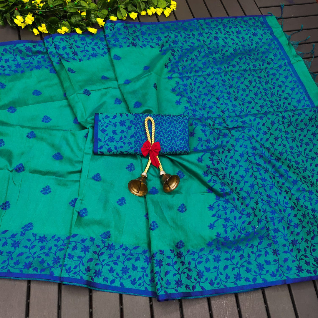 Rama Green Color Khadi Raw Silk Saree With Jamdani Weaving Border