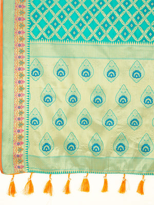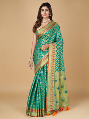 Rama Green Color Patola Silk Saree With Zari Weaving Work