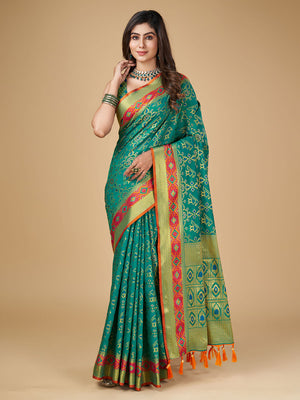 Rama Green Color Patola Silk Saree With Zari Weaving Work