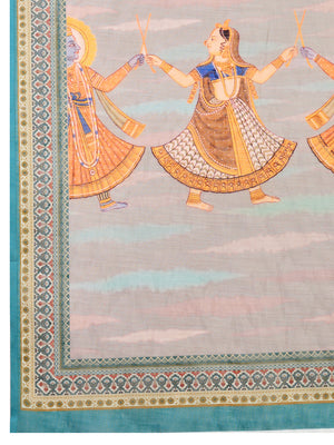 Rama Green Linen Cotton Saree With Digital Printed Work And Silver Zari Border