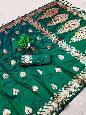 Rama Green Traditional Banarasi Silk Saree With Zari Weaving Work