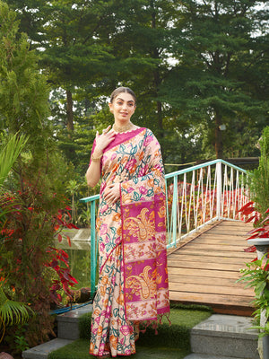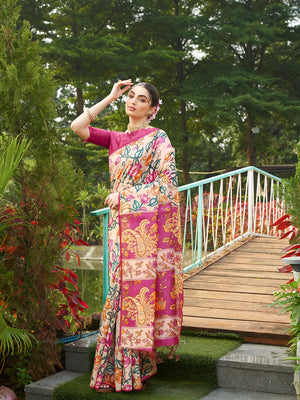 Rani Pink Kalamkari Printed Designer Tussar Silk Saree