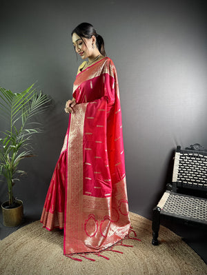 Rani Pink Soft Banarasi Silk Saree With Zari Weaving Work