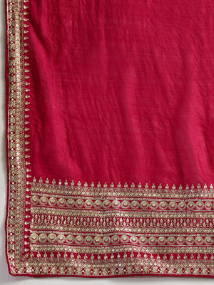 Rani Pink Soft Vichitra Silk Saree With Embroidery Work