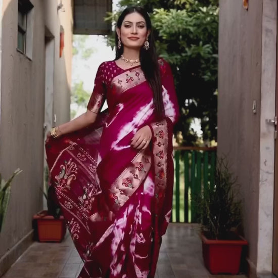 Maroon Traditional Blooming Vichitra Khadi Bandhej Silk Saree With Sequence Work