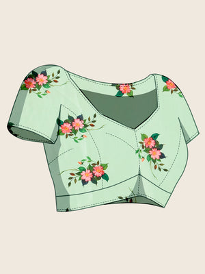 Sea Green Soft Chinnon Silk Saree With Digital Printed Work