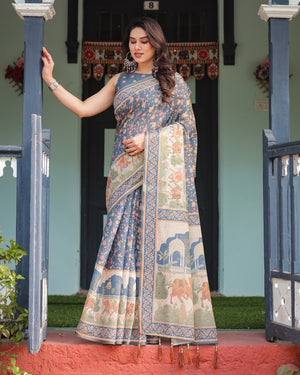 Soft Linen Cotton Saree With Kalamkari Printed Work