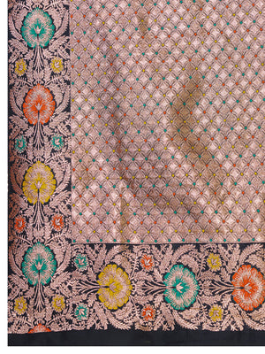 Traditional Black Color Jacquard Silk Saree With Zari Work