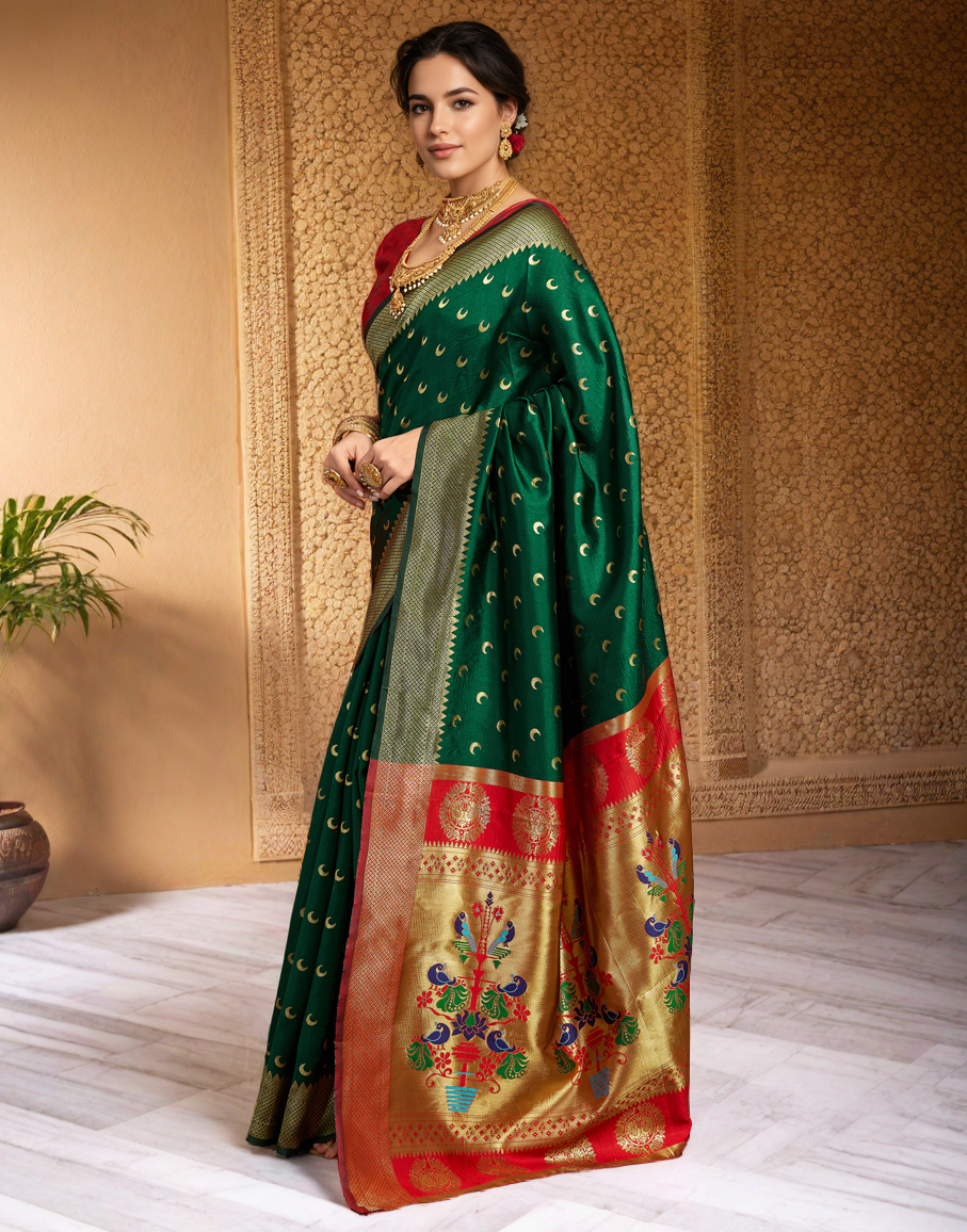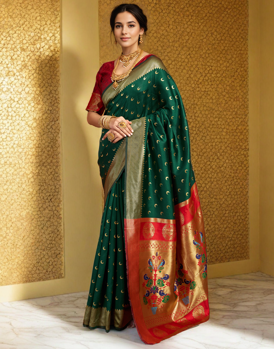 Traditional Chand Design Paithani Silk Saree With Zari Weaving Work