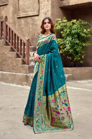 Traditional Firoji Paithani Silk Saree With Zari Weaving Work