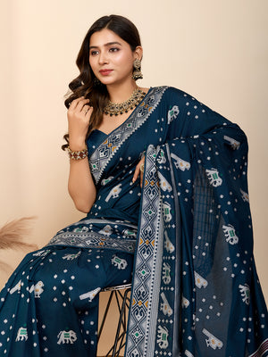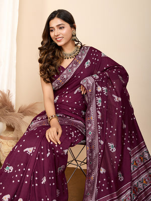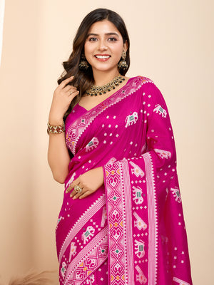 Traditional Muslin Dola Silk Saree With Meenakari Zari Weaving Work