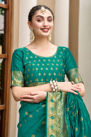 Traditional Rama Green Paithani Silk Saree With Zari Weaving Work