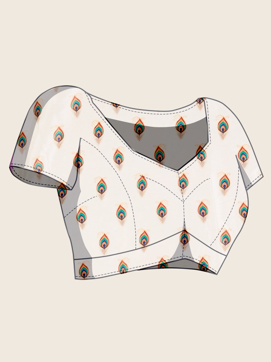 White Soft Chinnon Silk Saree With Digital Printed Work