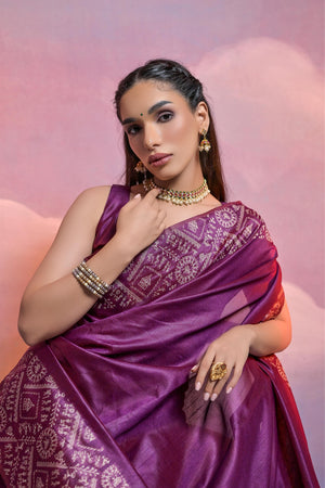 Wine Color Handloom Raw Silk Saree With Contrast Weaving Work