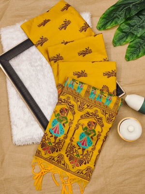 Yellow Traditional Handloom Raw Silk Saree With Woven Design